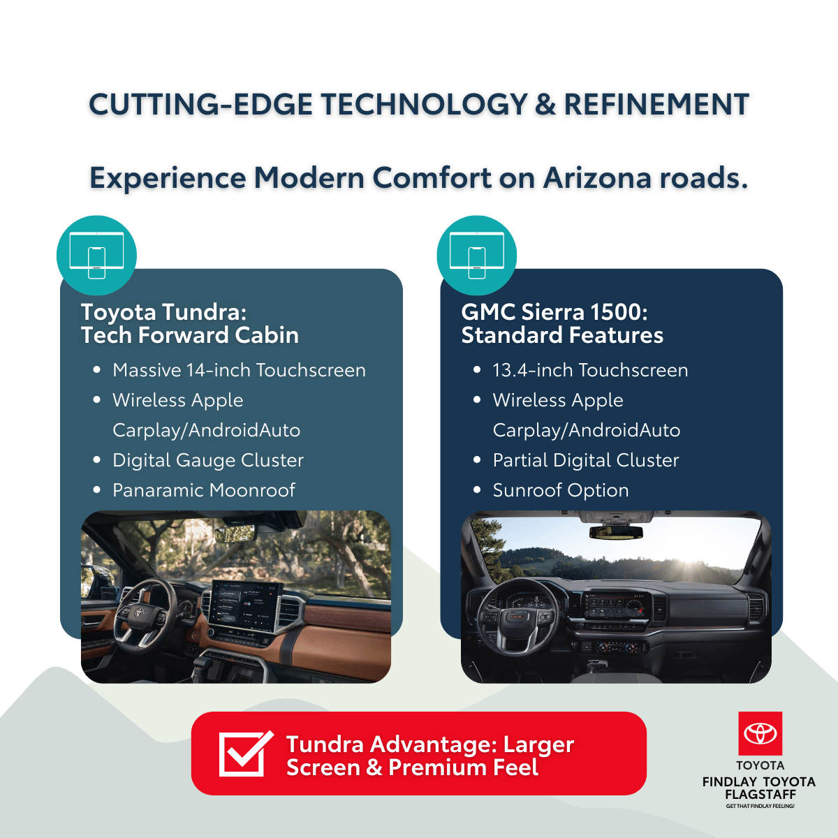 For truck buyers in Flagstaff, Sedona, Prescott, and Cottonwood, the choice of a new pickup is a significant decision. Among the top contenders, the Toyota Tundra and the GMC Sierra 1500 stand out. While both offer impressive features and capabilities, Findlay Toyota Flagstaff firmly believes the Toyota Tundra presents a more compelling package of reliability, advanced engineering, and long-term value that savvy Arizona truck owners will appreciate.