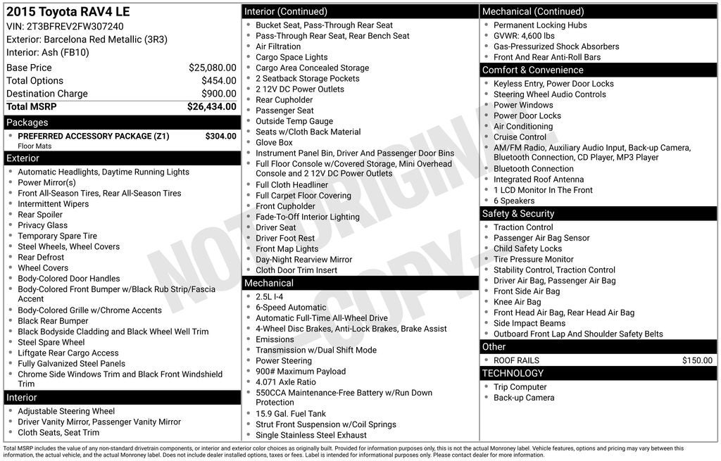 This stunning 2015 Toyota RAV4 LE comes equipped with the following features: