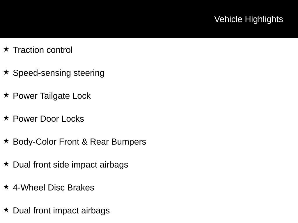 - 4-Wheel Disc Brakes w/4-Wheel ABS, Front And Rear Vented Discs, Brake Assist, Hill Hold Control and Electric Parking Brake