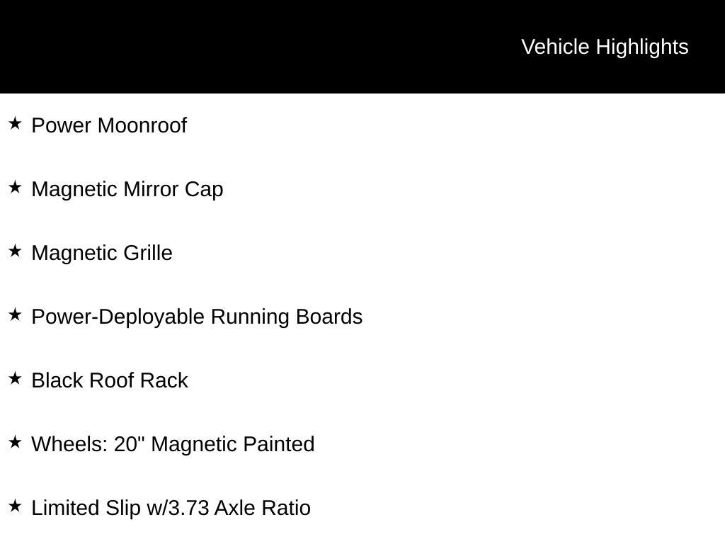 The Limited Appearance Package adds a touch of elegance with its magnetic-accented exterior details, while the Power-Deployable Running Boards make it easy to enter and exit the vehicle. The voice-activated navigation system and premium Sony sound system ensure you'll stay connected and entertained on every journey.