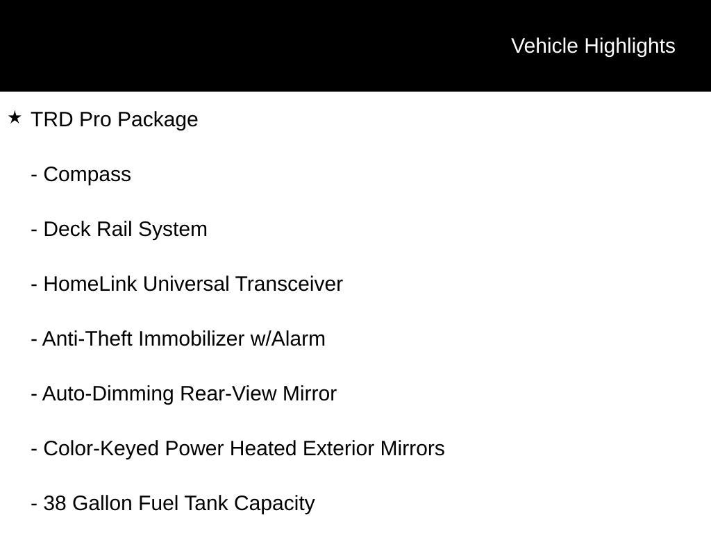 - Wheels: 18" x 8J Split 5-Spoke TRD Black Alloy