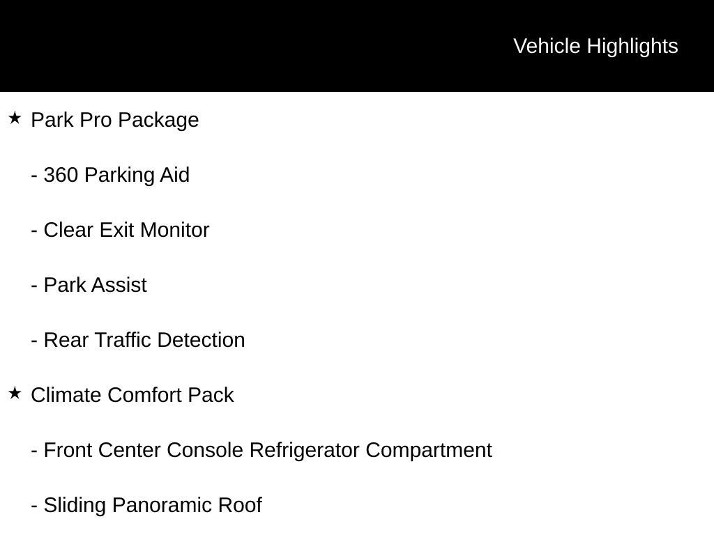Adaptive Cruise Control, Park Assist, and a 360-degree camera system provide unparalleled convenience and confidence behind the wheel. The Sliding Panoramic Roof and 4-Zone Climate Control allow you and your passengers to enjoy the ultimate in comfort and versatility.