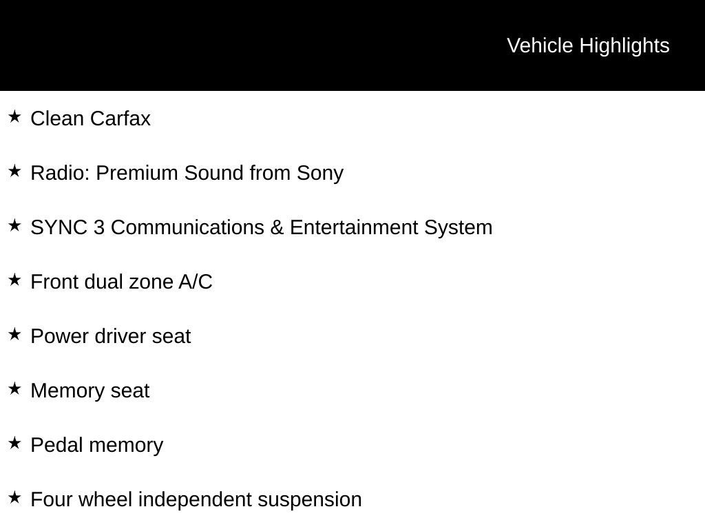 The advanced SYNC 3 infotainment system with navigation, premium Sony audio, and Apple CarPlay/Android Auto integration keeps you connected and entertained on the road. Safety features like lane departure warning, automatic high-beam headlights, and a rear-view camera provide added peace of mind.
