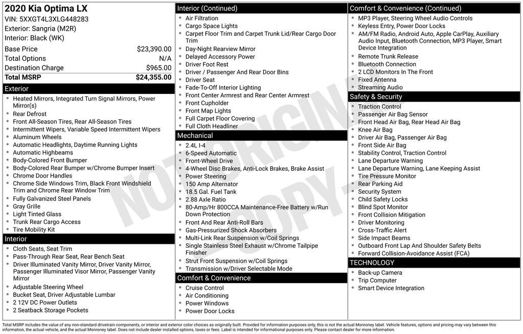 Whether you're in the market for a reliable daily driver or a versatile family sedan, this 2020 Kia Optima LX deserves your attention. With its impressive combination of style, technology, and value, it's sure to exceed your expectations. We invite you to schedule a test drive and experience the Optima's exceptional qualities for yourself. Our knowledgeable sales team is here to answer any questions you may have and help you find the perfect vehicle to fit your needs.