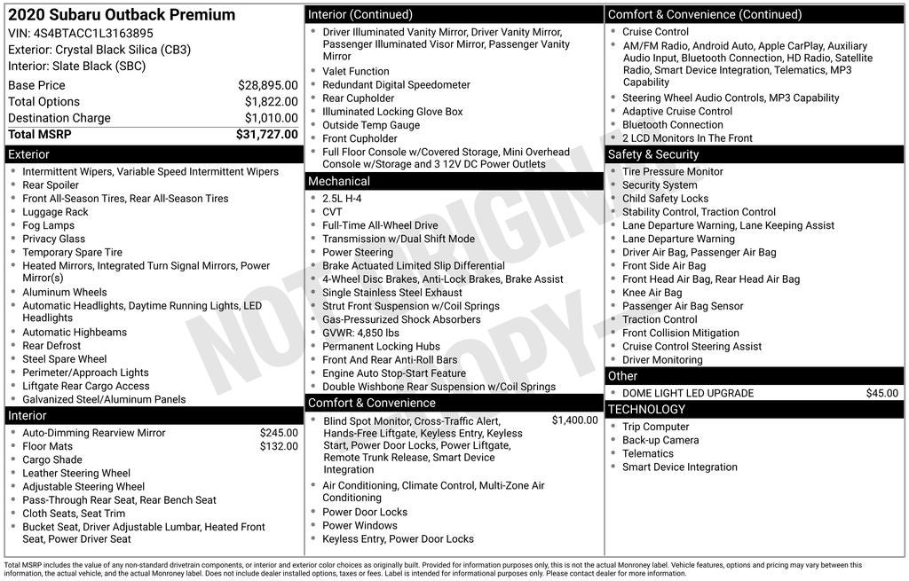 - Vehicle Name: Subaru Outback