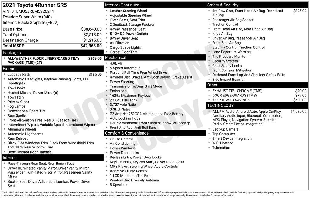 - Vehicle Name: Toyota 4Runner