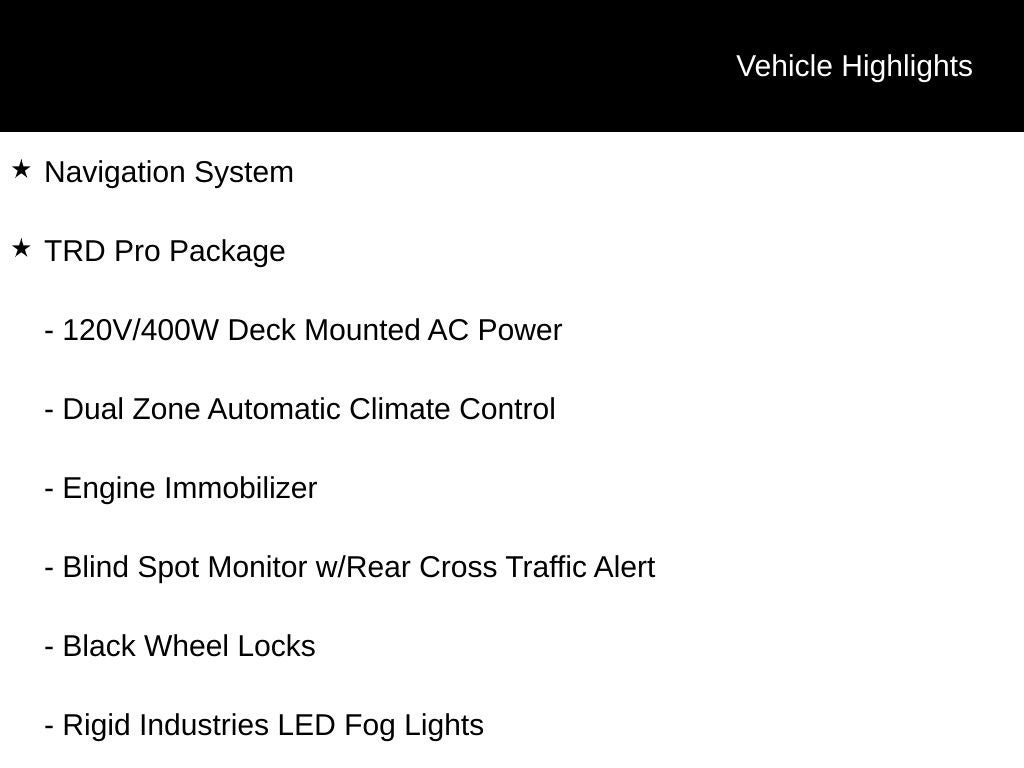 - Wheels: 16" x 7J TRD Pro Black Alloy