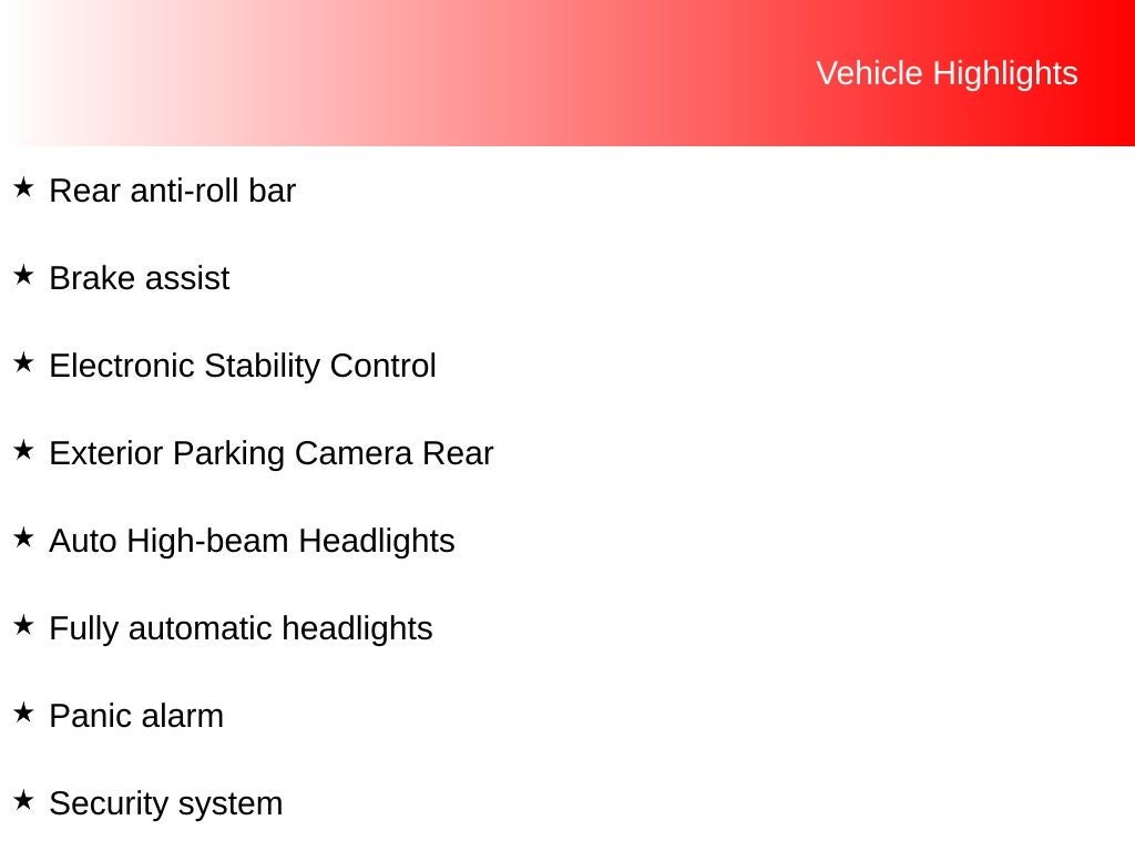 - 4-Wheel Disc Brakes w/4-Wheel ABS, Front Vented Discs, Brake Assist and Hill Hold Control