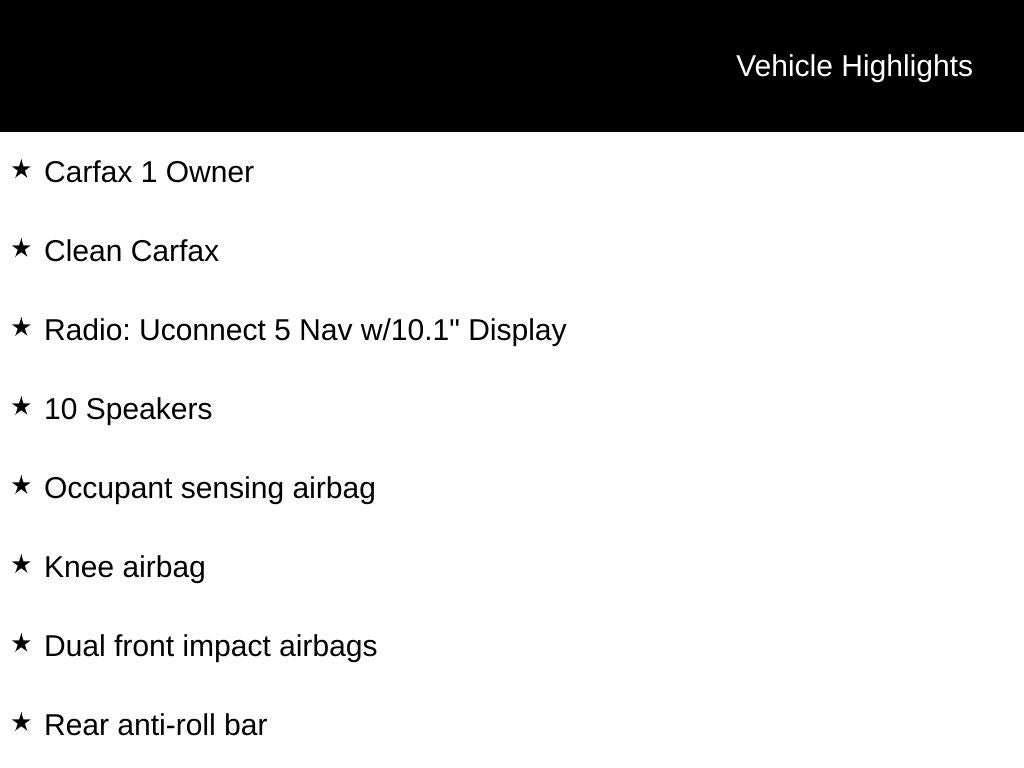 - 10 Speakers, Uconnect 5 Nav with 10.1 Display, and Apple CarPlay/Android Auto