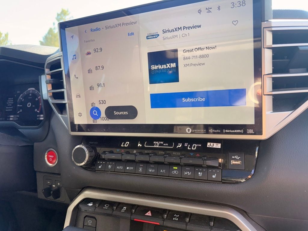 Inside, you'll find luxurious SofTex-trimmed seating, a spacious and versatile 3-row layout, and a host of advanced technologies. The 14-inch touchscreen display puts navigation, connectivity, and vehicle controls at your fingertips. Heated and ventilated front seats, a heated steering wheel, and a power liftgate add to the Sequoia's premium feel and convenience.