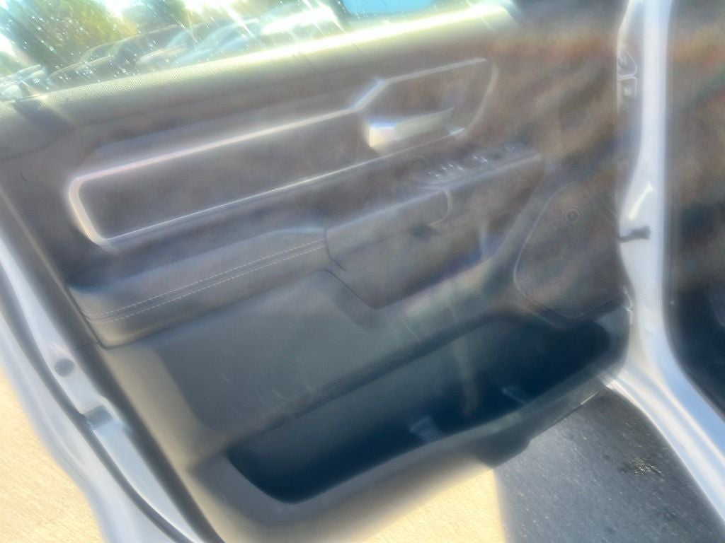 The exterior of this Ram 1500 is finished in a sleek White color, complemented by the Black Premium Power Mirrors and 18 Cast-Aluminum Painted Wheels. Inside, the Black Deluxe Cloth Bucket Seats provide exceptional comfort and style, with the Power Adjustable 8-Way Driver's Seat and 2-Way Lumbar Support ensuring a personalized fit.