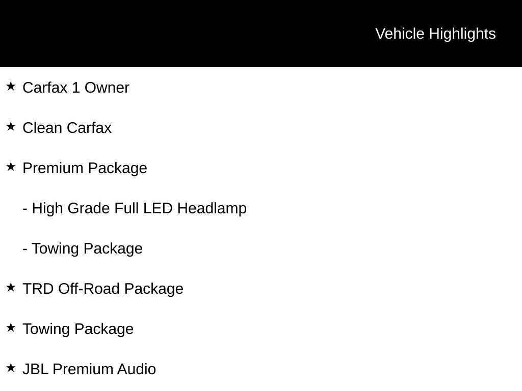 - Premium Package with Towing Package and High Grade Full LED Headlamp